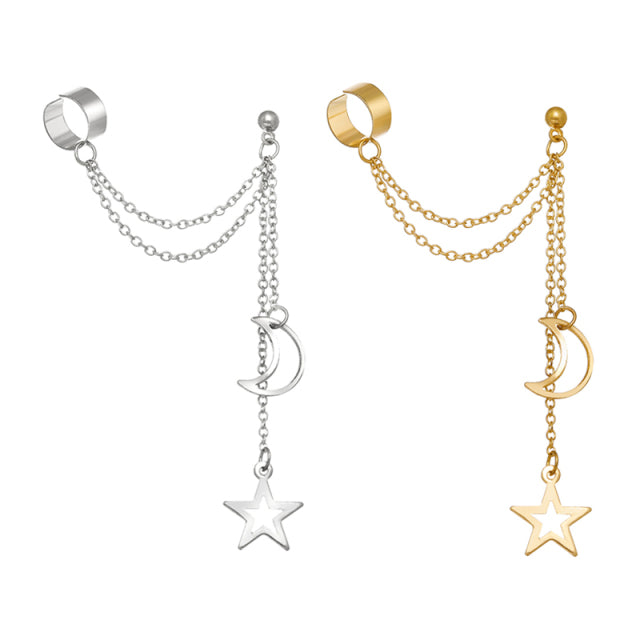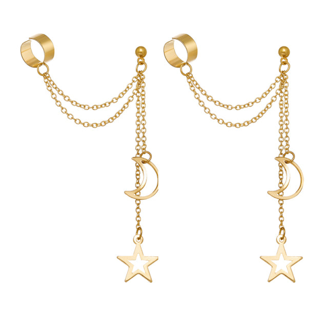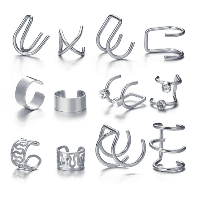 17KM Gold Leaves Ear Cuff Black Non-Piercing Ear Clips Fake Cartilage Earrings Clip Earrings For Women Men Wholesale Jewelry