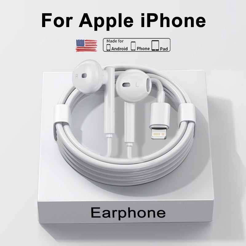 For Apple Original Headphones For iPhone 14 13 12 11 Pro Max mini Lightning Earphones X XS XR 7 8 Plus SE Wired Bluetooth Earbud