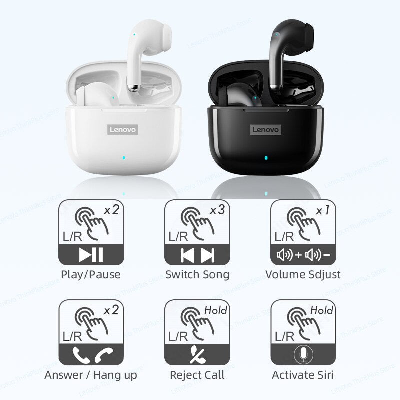 Lenovo LP40 Pro Earphones Bluetooth 5.0 Wireless Sports Headphone Waterproof Earbuds with Mic Touch Control TWS Headset