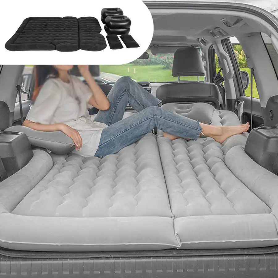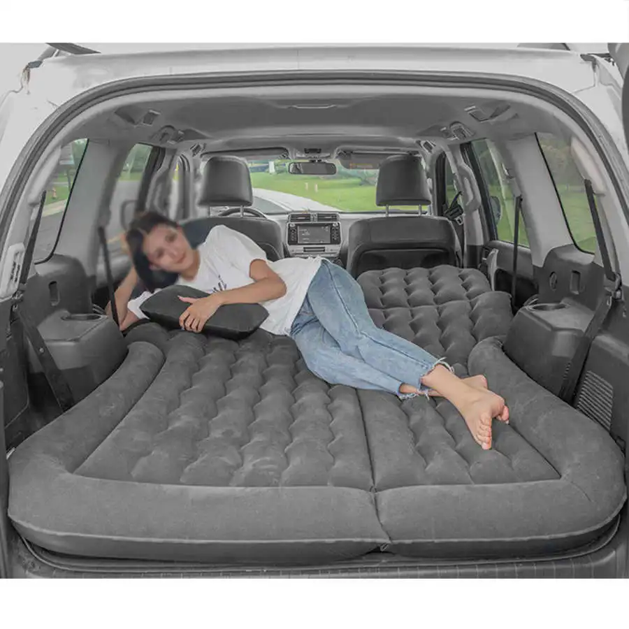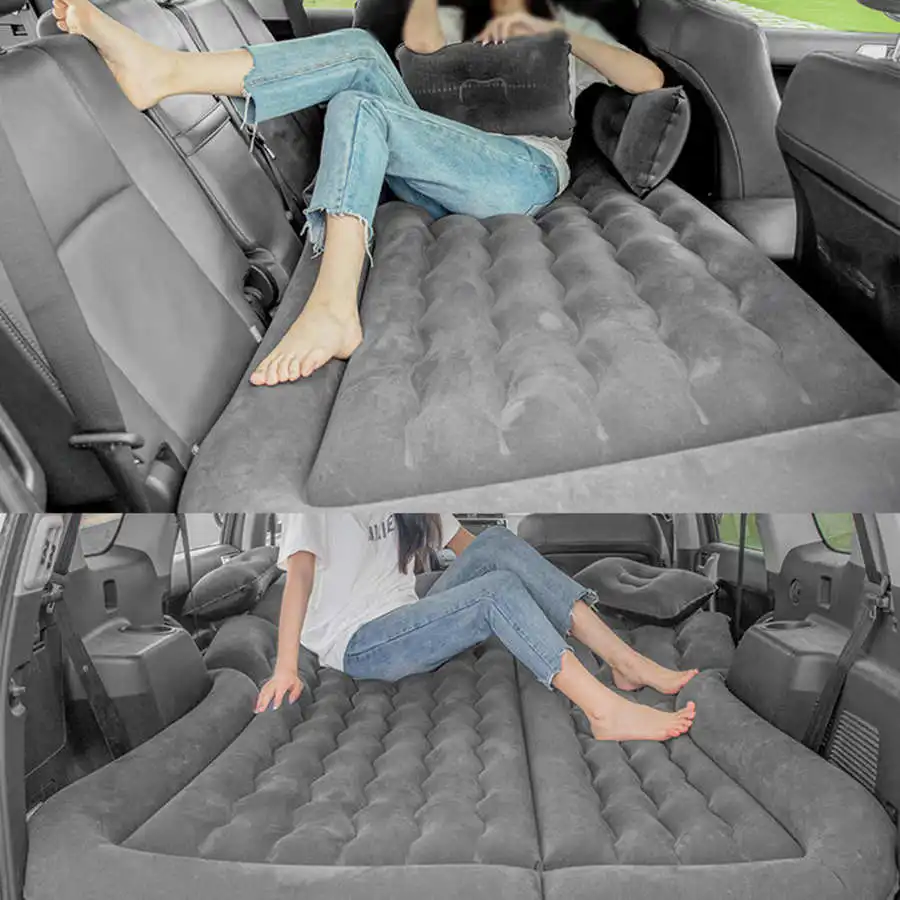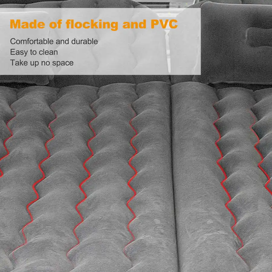 1. SUV air mattress camping bed cushion pillow, inflatable thickened car air bed with electric air pump, flocking surface portable sleeping pad for travel camping.2. Made of flocking material, great resilient(can support 3 large people and no ) comfortable and durable.