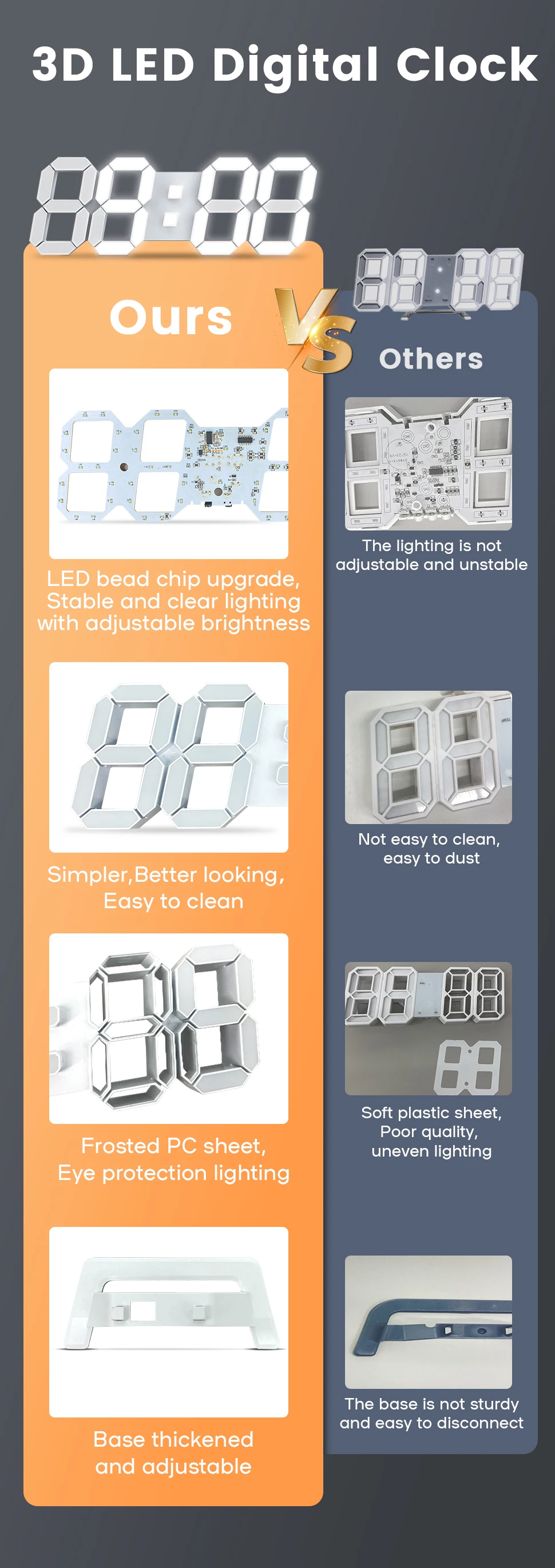 Elegant Design: With awesome aesthetics, Black led clock naturally assimilate itself into any simple design wall or furniture, perfectly match.